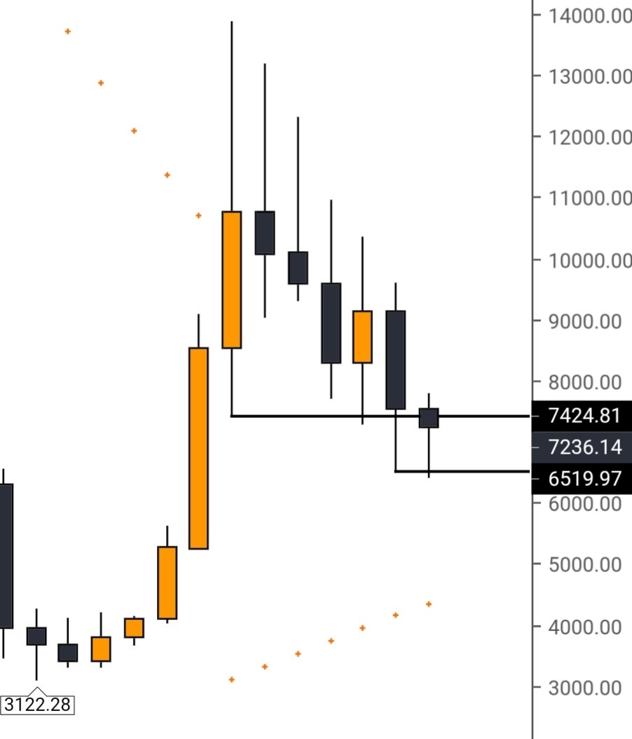 The analyst noted that there exists strong buying pressure under $7,000, as marked by the long wicks on the chart that can be seen below. This suggests that there is strong long-term buying interest in the $6,000s and that this is a region in which BTC should find a macro bottom.